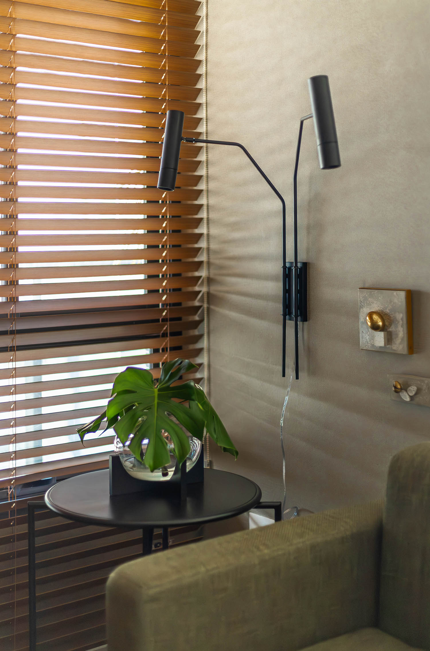 A proposta foi criar um apartamento charmoso e prático, alinhado ao conceito do empreendimento, cuja atmosfera se conecta diretamente à Praça das Flores, um dos principais cenários da região. As cores neutras e suaves dominam a paleta, trazendo sensação de amplitude e conforto, além de reforçar a elegância discreta que guia todo o projeto.