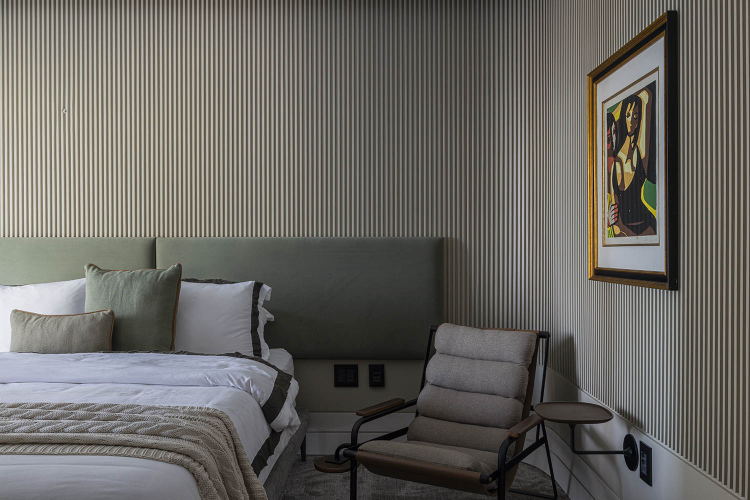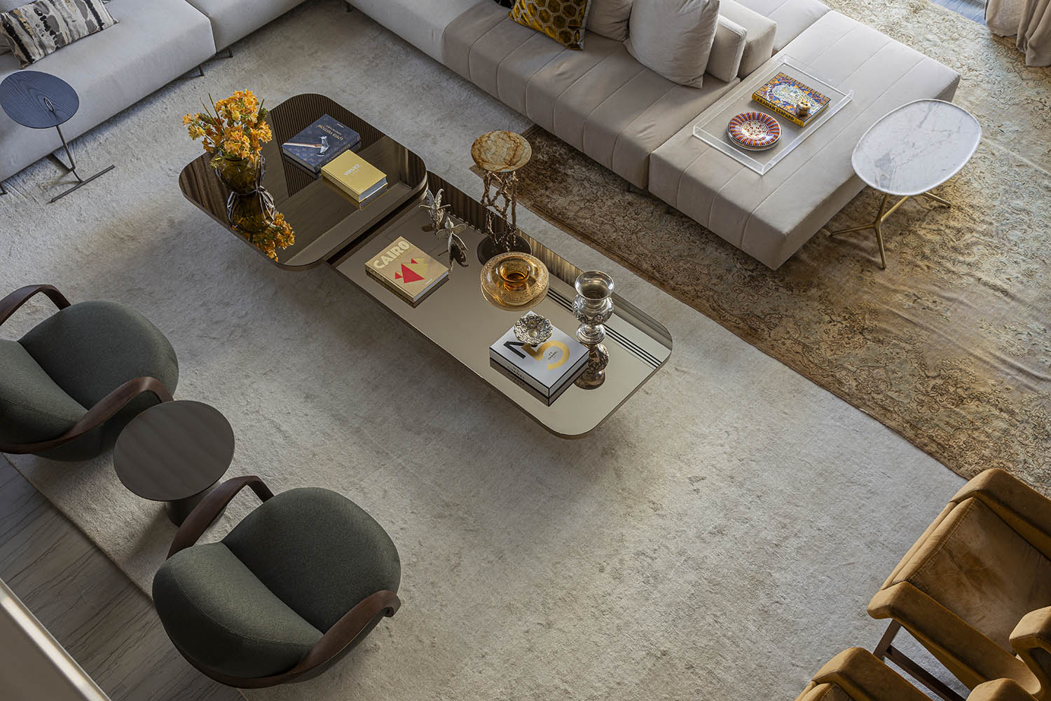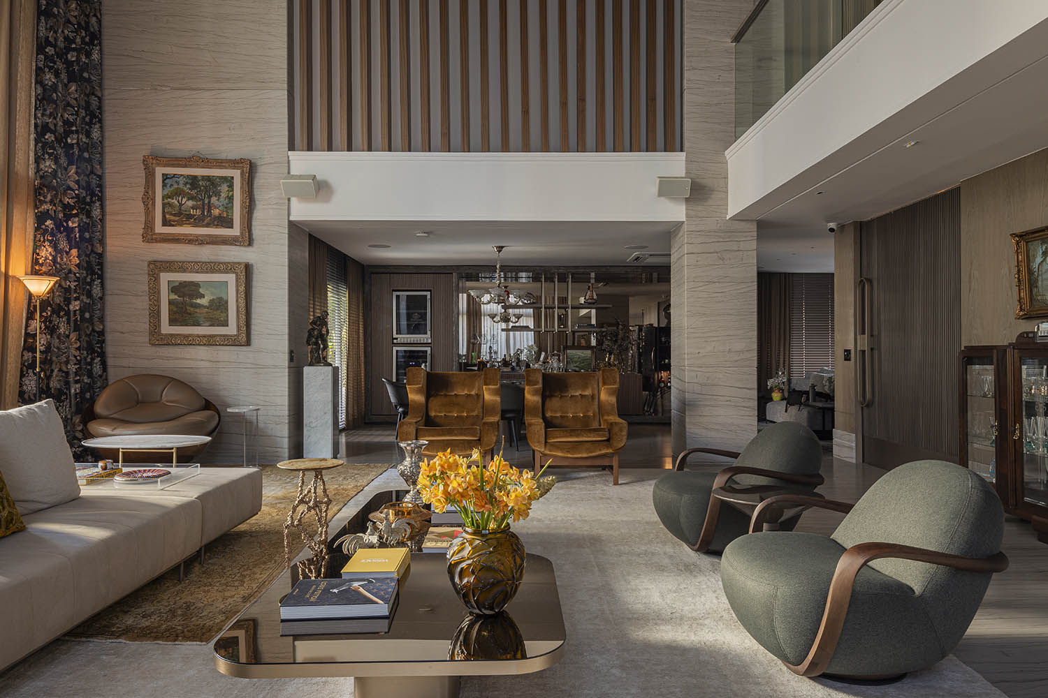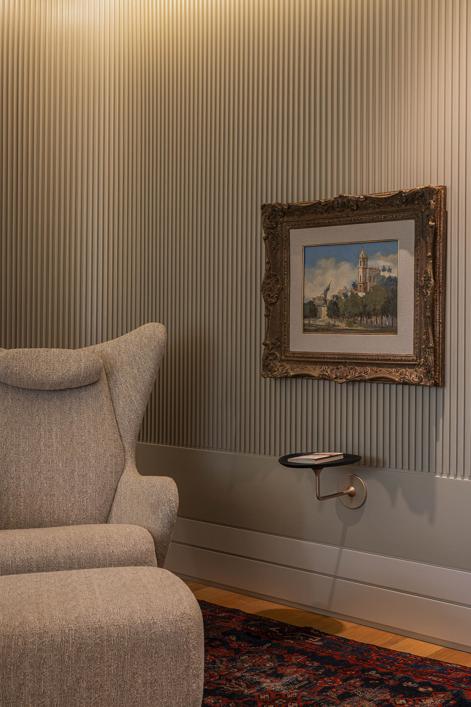A estética do projeto dança entre o clássico e o contemporâneo. Mobiliário de antiquários se mistura a peças do design brasileiro atual. Coleções de família se unem a composições autorais. Frassino é sobre continuidade — dos materiais, da luz e da vida em família.