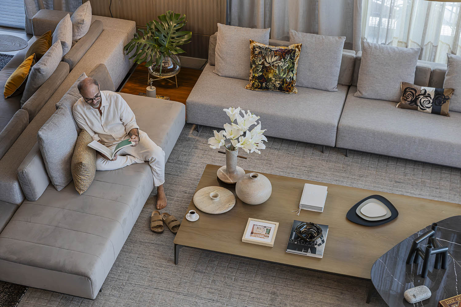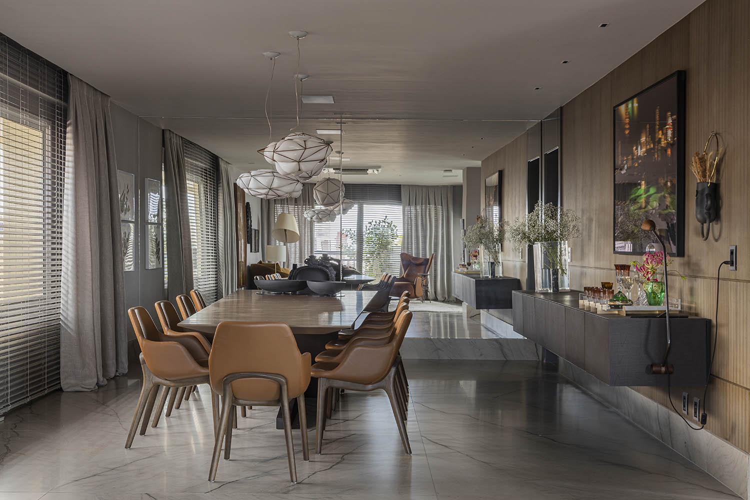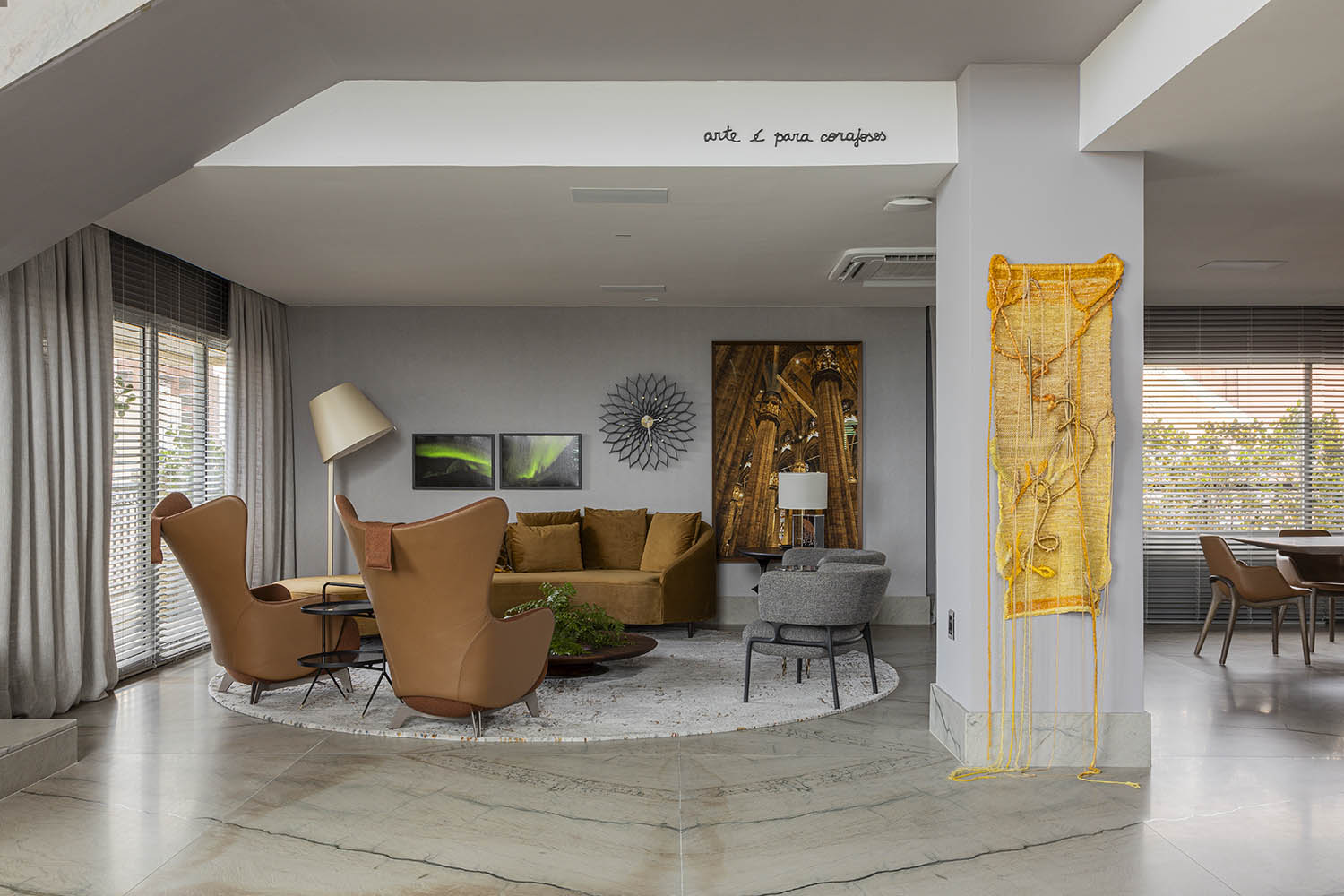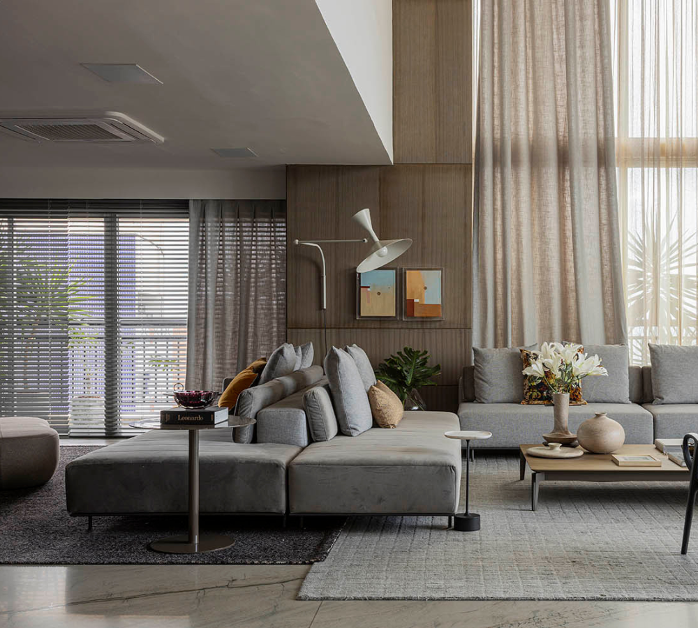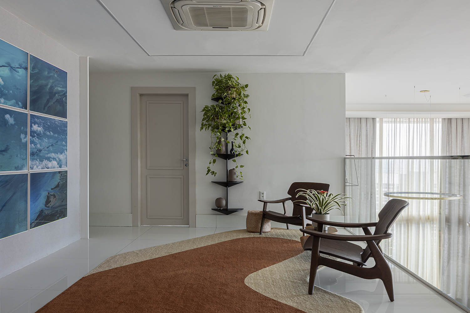 Pensado como uma morada de retorno, o Apartamento Refúgio — um duplex de 600 m² — se transforma no ponto de apoio afetivo para uma família que, mesmo vivendo em São Paulo, mantém raízes profundas com Fortaleza. Mais do que uma residência temporária, o projeto representa o reencontro com a cidade natal, com os vínculos familiares e com a própria memória.