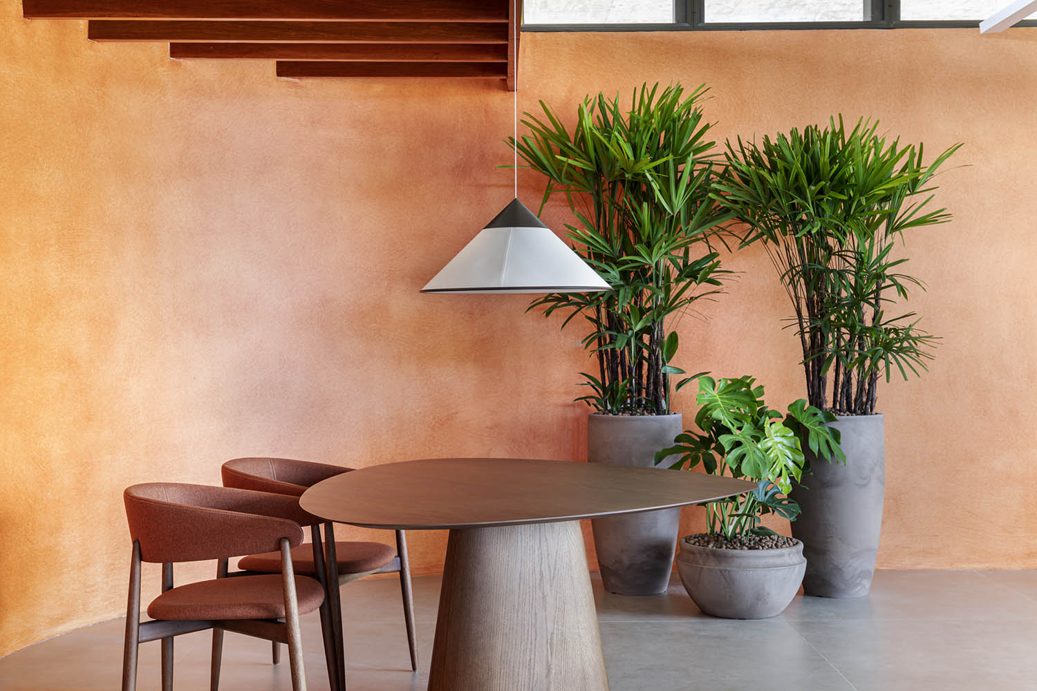 Nos interiores, os mesmos princípios persistem: simplicidade, materiais naturais e precisão. O mobiliário de design brasileiro compõe espaços acolhedores e funcionais. A arquitetura que buscamos depura a complexidade até restar apenas o essencial, o inevitável.