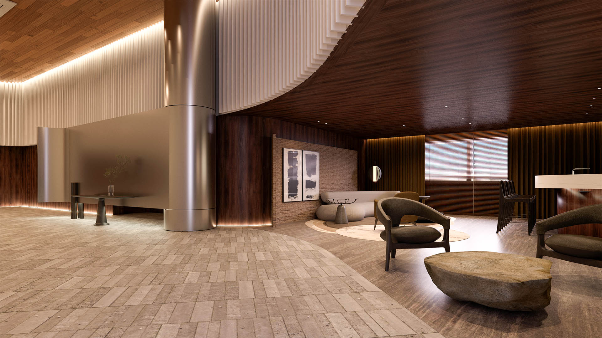 O projeto busca o equilíbrio entre o gesto arquitetônico e o conforto cotidiano. Os interiores não apenas acompanham a estrutura do edifício, mas a amplificam, criando um percurso sensível entre cidade e arquitetura.
